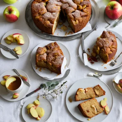 Nøgleord: æblekage, brunch, sukker, kanel, nødder, bagepulver, kolesterolfattig